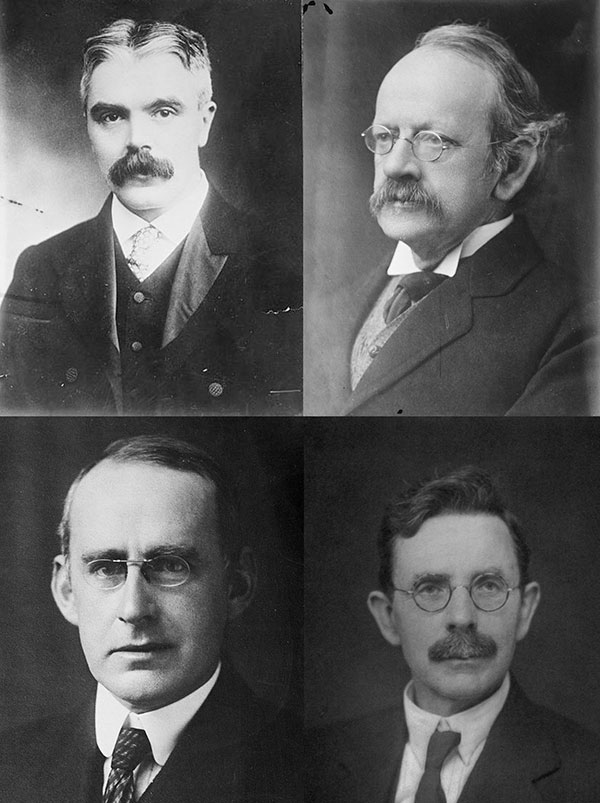 Cuatro de los protagonistas. De izquierda a derecha y de arriba abajo: F.W. Dyson, J.J. Thomson, A.S. Eddington y C.R. Davidson.