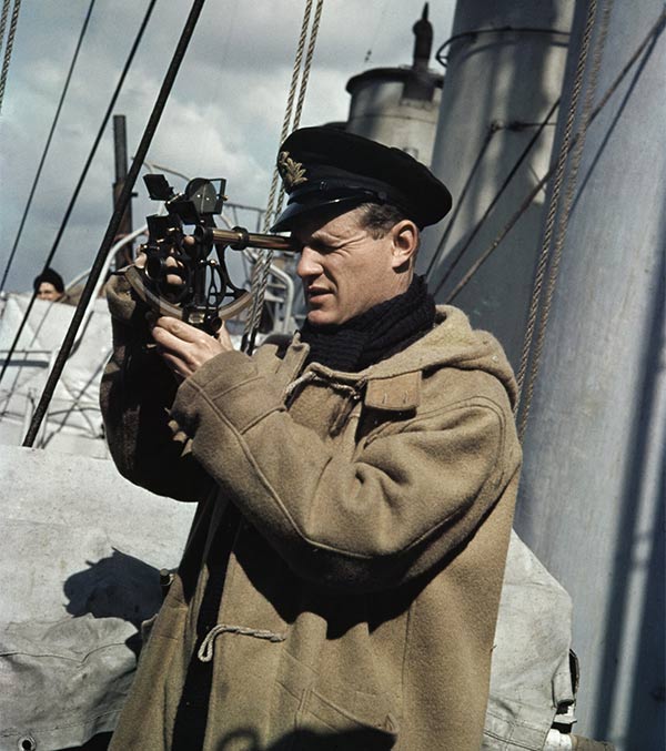 Oficial de la Royal Navy operando un sextante (1942).